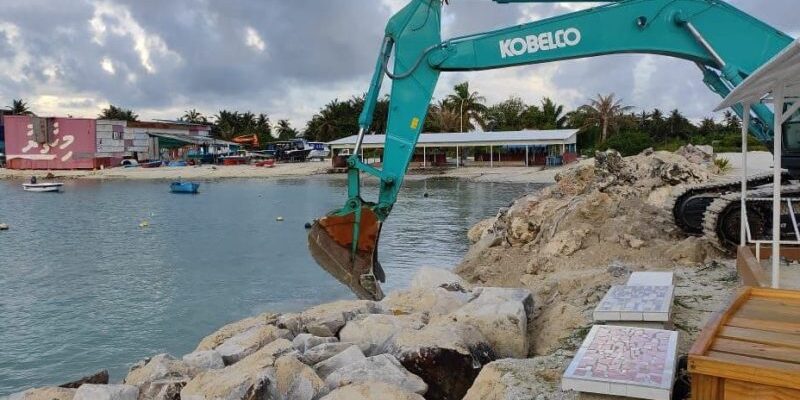 Kulhudhuffushi City council has commenced repairing and sorting of the breakwater of Islands southern side boatyard area with the assistance from Maldives Transport and Contracting Company (MTCC).