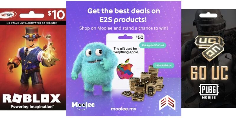 Moolee is Ooredoo Maldives e-commerce platform. E2S products available under the platform are digital cards and gaming currency products. These include gift cards from companies such as Netflix, Apple, PlayStation and Microsoft, and game currency such as PUBG UC.