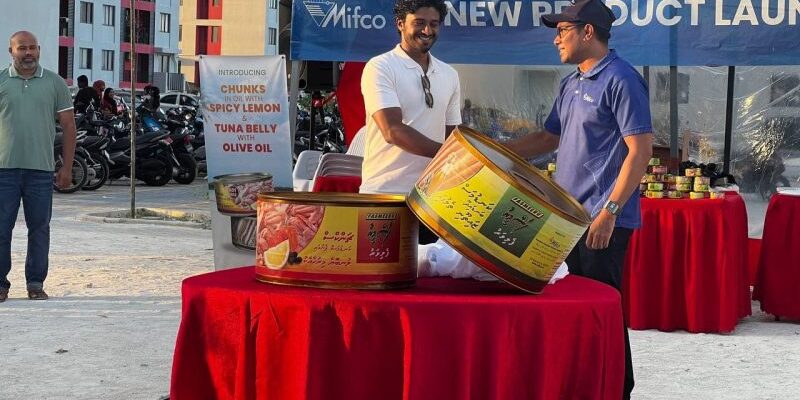 The Fish cans were first shown to the public at a ceremony held in Hulhumale’ Phase II yesterday. The fish can were introduced by CEO of MIFCO Ismail Fauzee and board member Shuaib Mohamed.