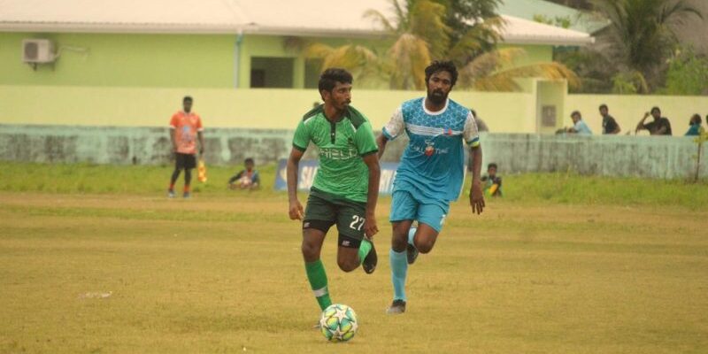 Shield and Ahulee met in the first match of the tournament, which began yesterday evening at the Hanimaadhoo Football Ground. The match ended in a 2-2 draw for both the teams. Ali Hussain of Ahulee was selected as the best player of the match.