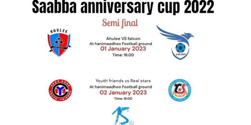 Youth Friends against Real Star and Ahulee against Falcon are set to play in the semifinals of Saabba Anniversary Cup 2022, organized by Saabba Ekuveri Club in Hanimaadhoo.