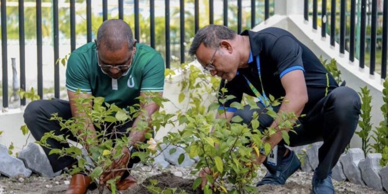 These activities will be held in Male’, Hulhumale’ and Kulhudhuffushi City where company’s operations are ongoing. Meanwhile, a special tree plantation and greening event was held in Hulhumale’ yesterday evening. The event was commenced by MWSC Managing Director Hassan Shah and Urbanco Chief Operating Officer Shathir Abdul Rahman. Senior management team and staffs of MWSC were present on the occasion.