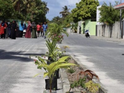 HDh. Hanimaadhoo Council planting trees in the Harbour areas and Driving Track area